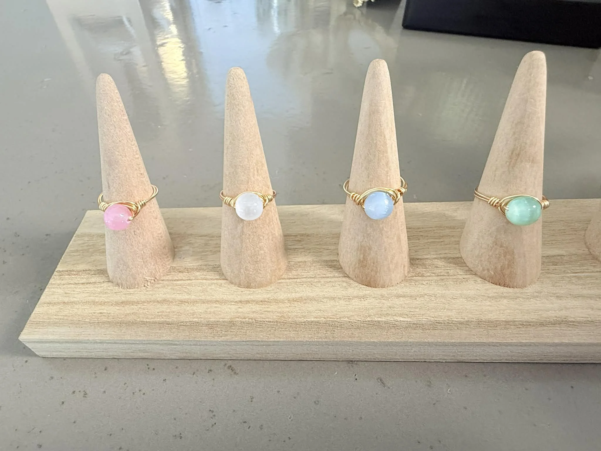 •Pink Grace $36 •Moonstone necklace $25 •The Honey (gold heart chain) $36 •Tiny Treasures (seed bead necklace) $25 •Pink Grace bracelet (pink crystals) $20 •Dalmatian bead bracelets $12.50 •Opalite bracelet $12 •Rose Faith bracelet $16 •Pearl Bow bracelet $26 •Birthstone rings (December - March) $36 •Moonstone rings $20 •Opalite rings $10.